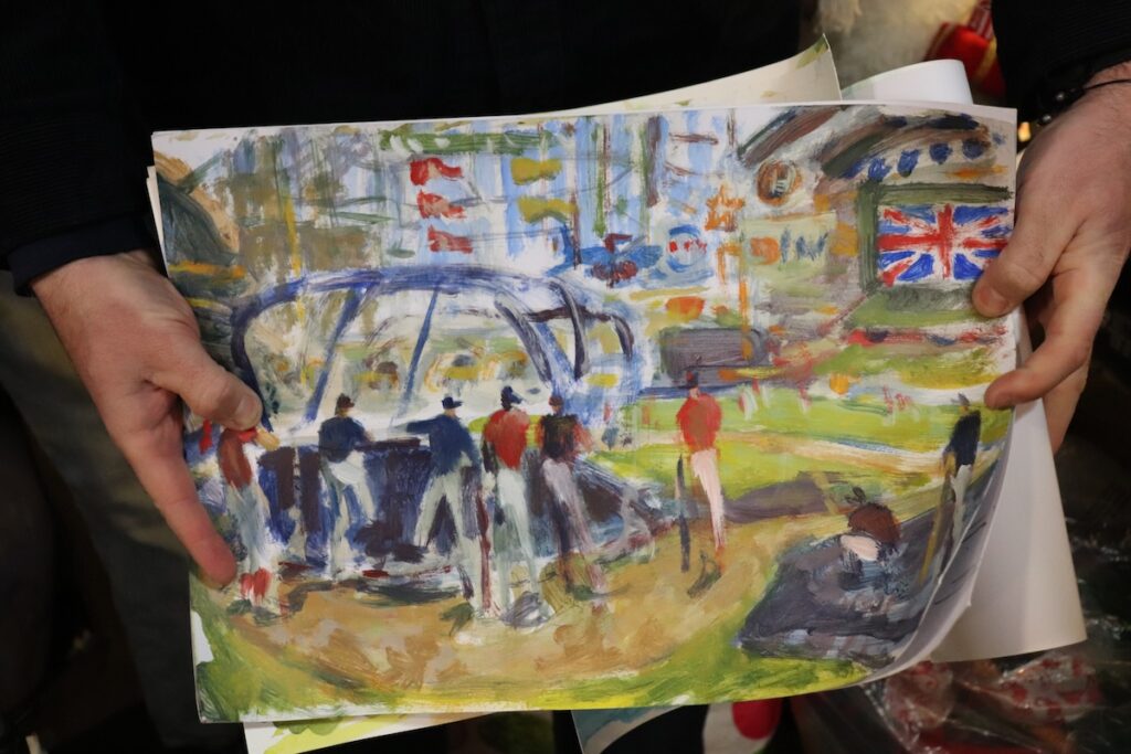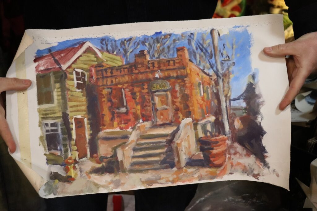 His paintings have become their own kind of travel log — a reminder of where he’s been and the people he’s met.