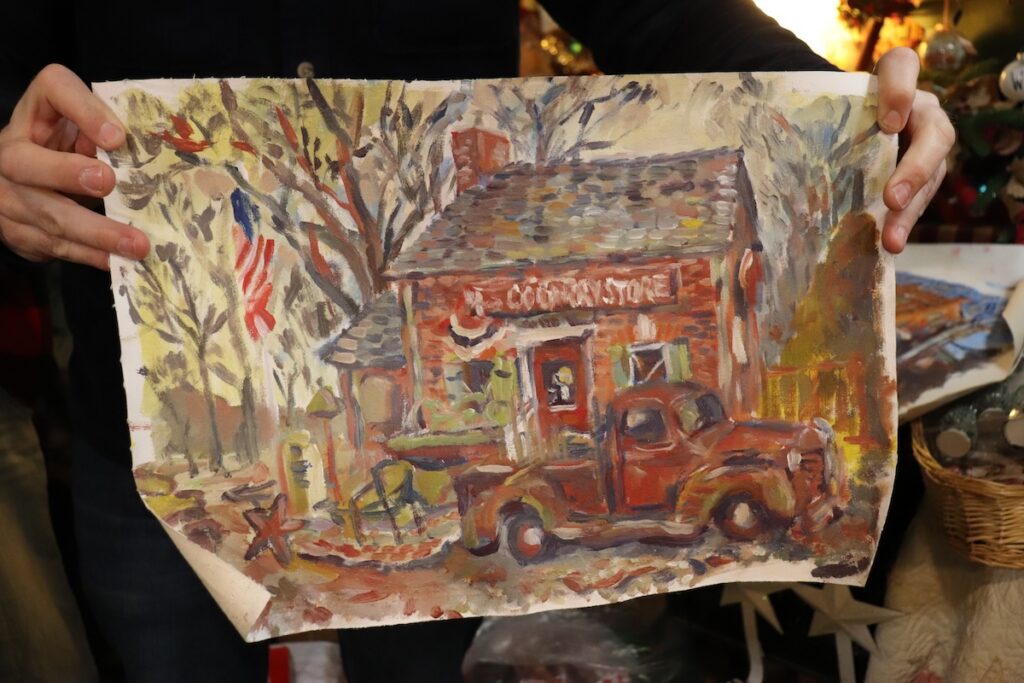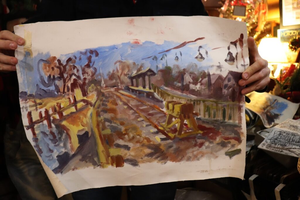 Mr. Brown typically carries an easel with him when traveling and picks up art supplies from local shops as he goes. During his North Fork visit, he painted the Jamesport Country Store, the historic former Greenport Village Jail and the Greenport Long Island Rail Road station.