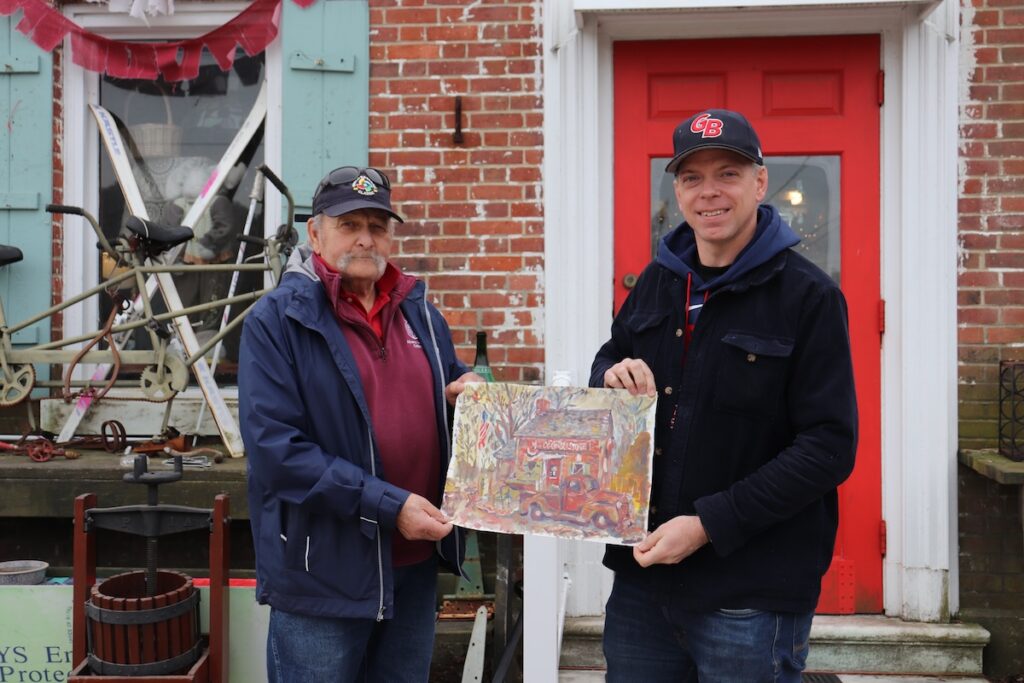 After the team was eliminated in group play, Mr. Brown stopped at the Jamesport Country Store to have one of his paintings framed, reconnecting with owner Howard Waldman, a friend of more than a decade.