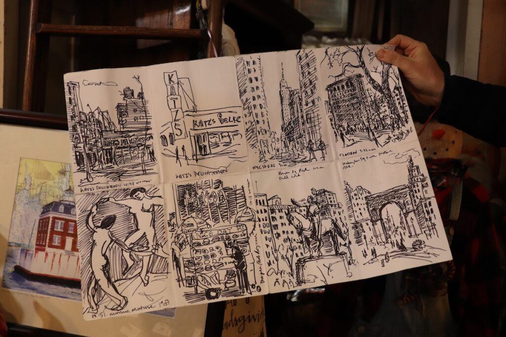 He also found it on the menu during his recent stopover in New York City, where, aside from chowing down on the cheesy delight, he sketched iconic Manhattan locations including the Flatiron Building, Empire State Building, Washington Square Park and Union Square Park.